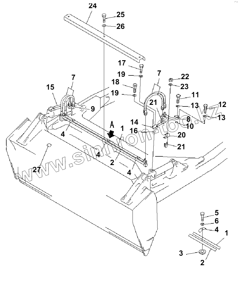 Каталог запасных частей к технике: Komatsu D85A-21B. BLADE TRIMMING CYLINDER PIPING (2/2)(36441-)