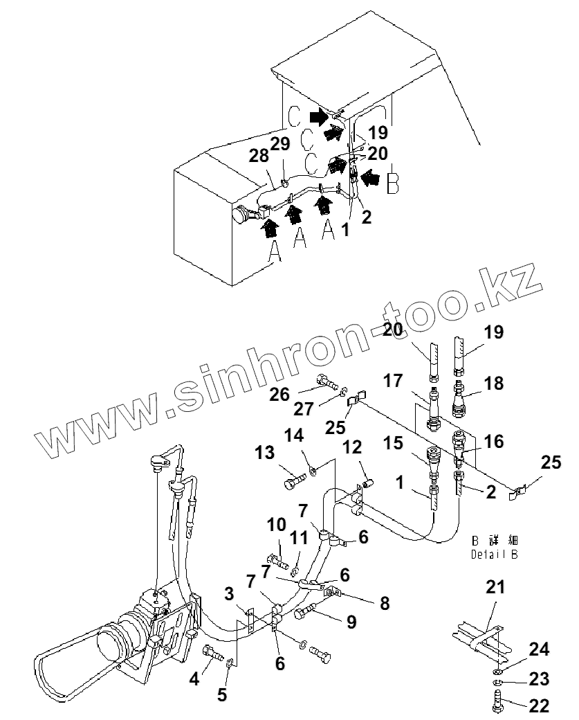 Каталог запасных частей к технике: Komatsu D85A-21B. COOLING PIPING (1/2)(36441-)