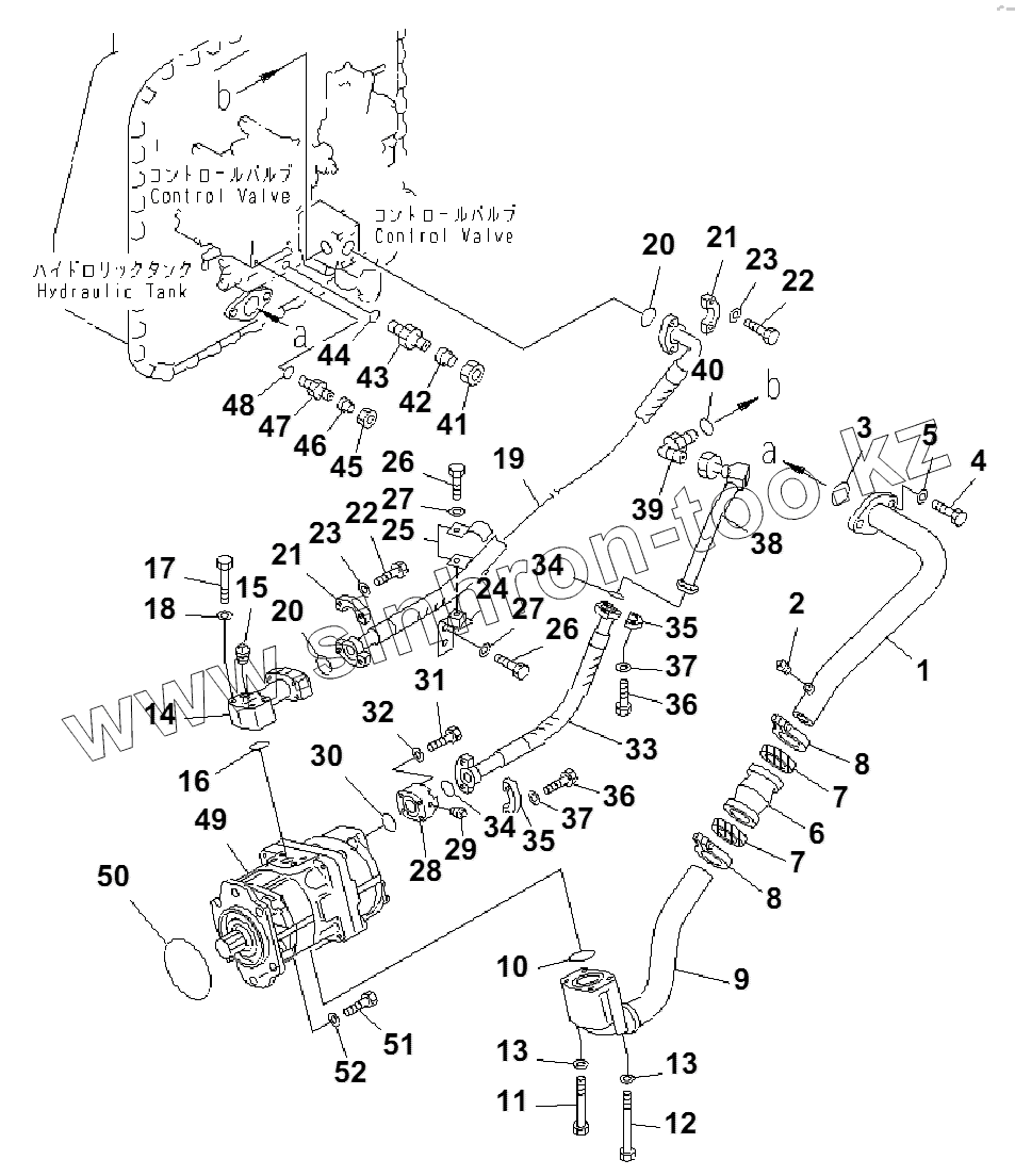 Каталог запасных частей к технике: Komatsu D85A-21B. HYDRAULIC PIPING (TANK TO PUMP) (TRIMMING)(36441-)