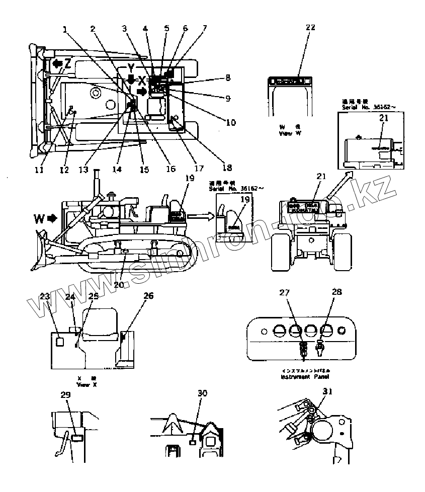 Каталог запасных частей к технике: Komatsu D85A-21B. MARKS AND PLATES (FRENCH)(35063-)