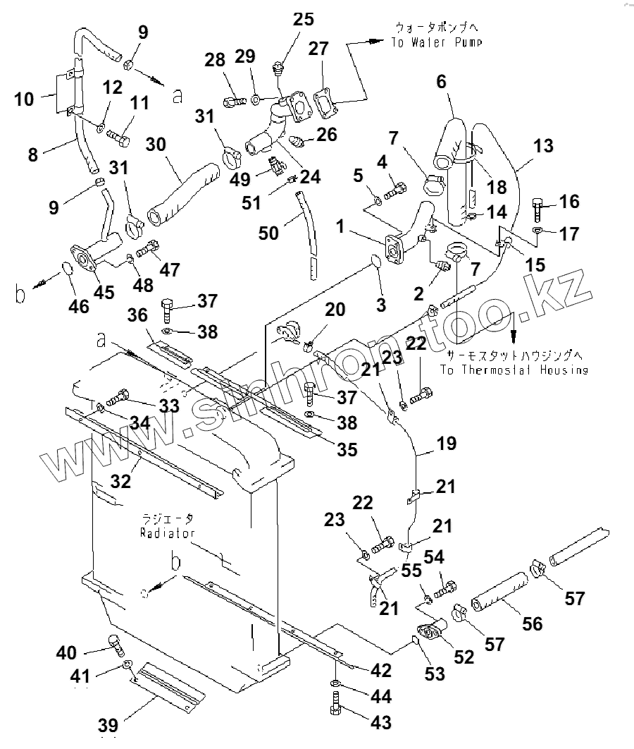 Каталог запасных частей к технике: Komatsu D85A-21B. RADIATOR PIPING AND WIND BREAKER(35001-)