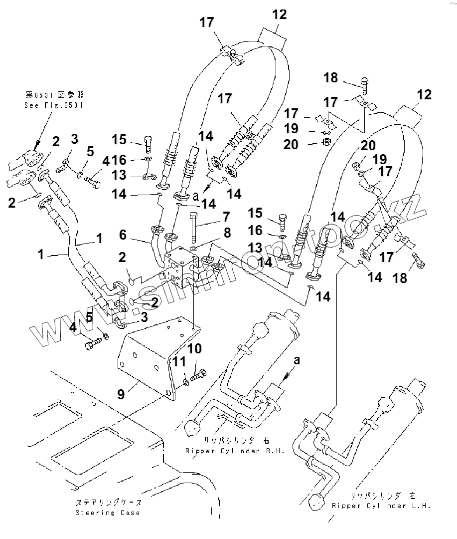 Каталог запасных частей к технике: Komatsu D85A-21B. RIPPER CYLINDER PIPING(35001-)