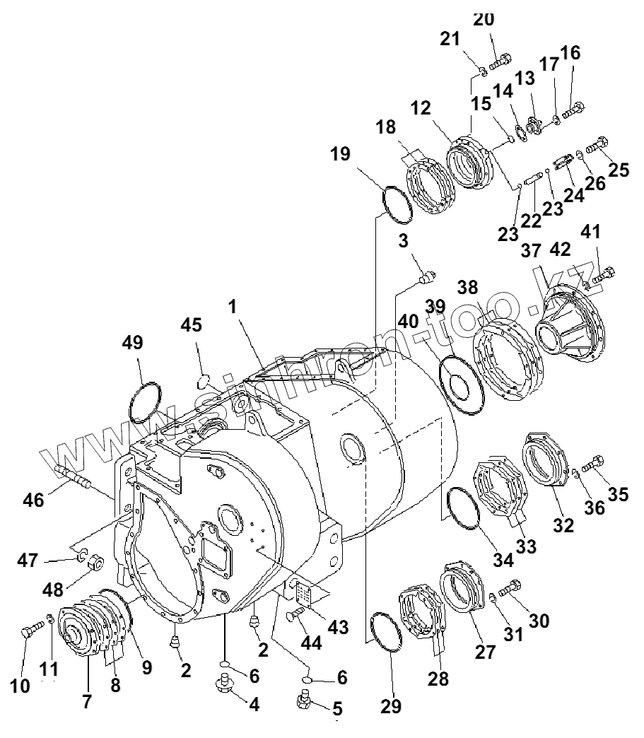 Каталог запасных частей к технике: Komatsu D85A-21B. TOWING WINCH CASE (1/2)(35001-)