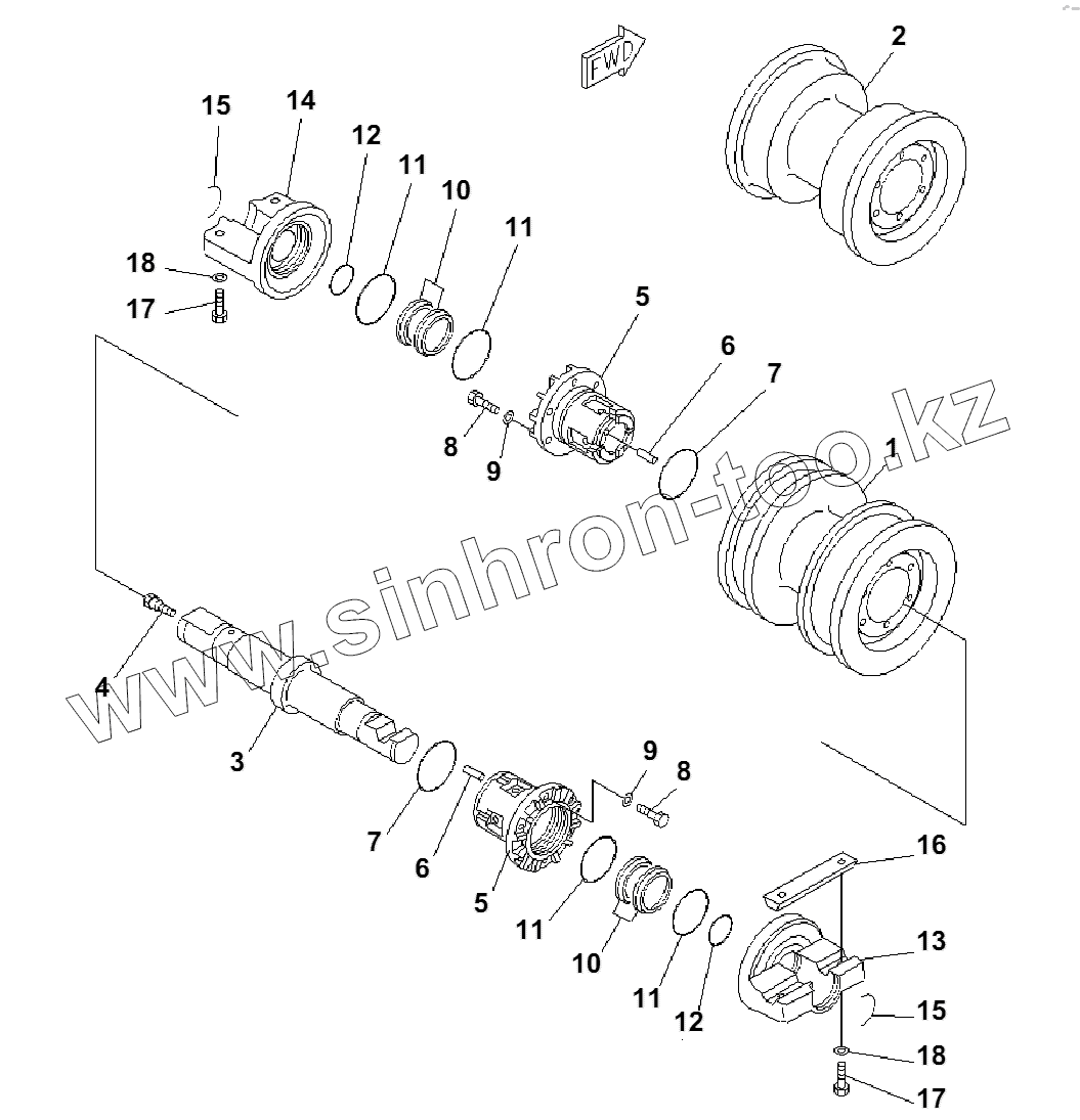 Каталог запасных частей к технике: Komatsu D85A-21B. TRACK ROLLER(35001-)
