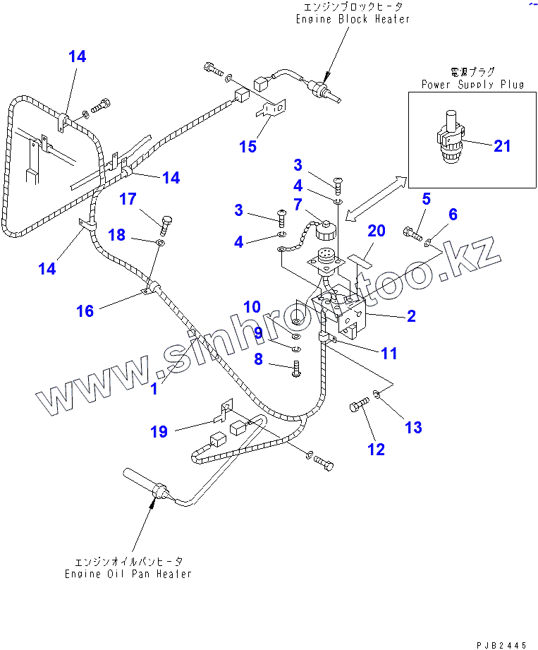 Каталог запасных частей к технике: Komatsu D85C-21A. ELECTRICAL ENGINE HEATER(37757-)