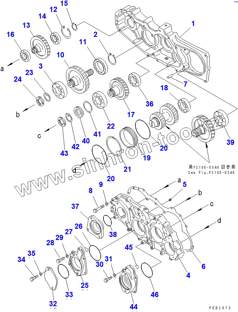 Каталог запасных частей к технике: Komatsu D85C-21A. POWER TAKE OFF (2/3)