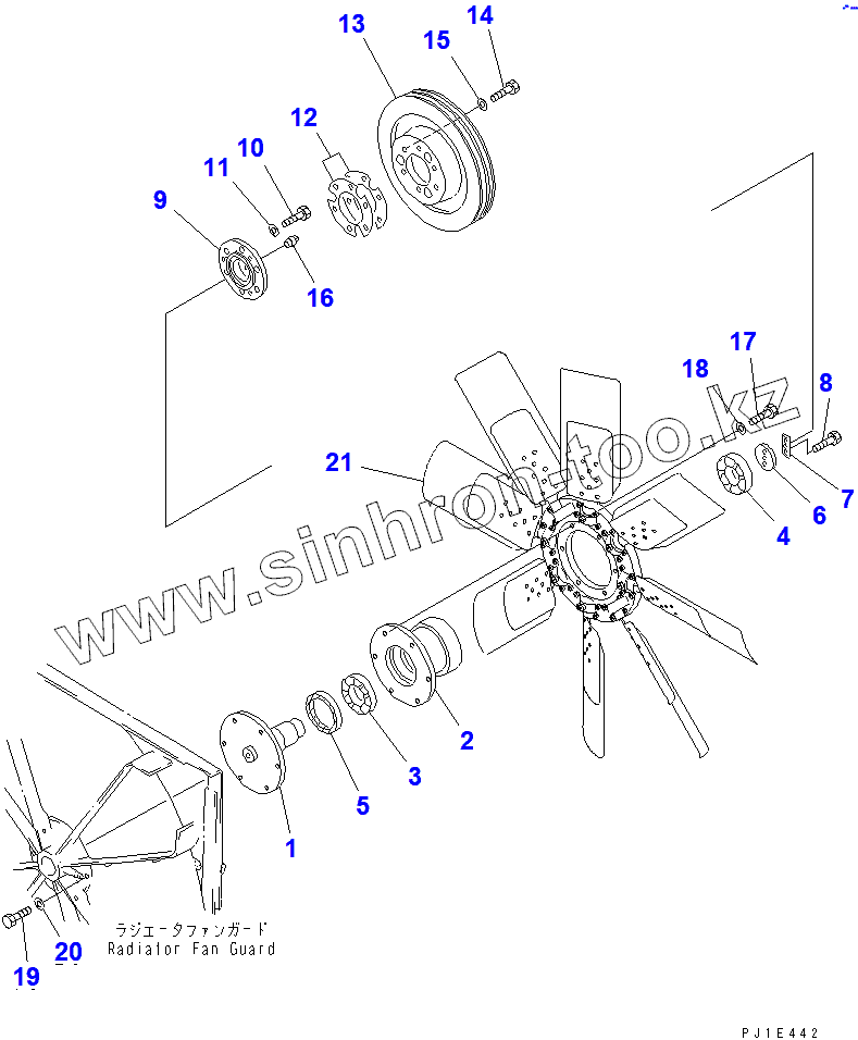 Каталог запасных частей к технике: Komatsu D85C-21A. RADIATOR FAN PULLEY (REVERSIBLE FAN)