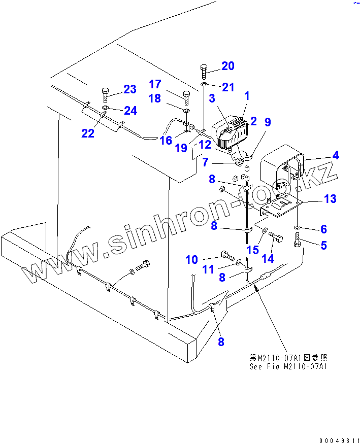 Каталог запасных частей к технике: Komatsu D85C-21A. SIDE LAMP(37780-)