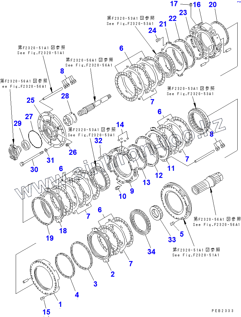 Каталог запасных частей к технике: Komatsu D85C-21A. TRANSMISSION (HOUSING) (2/6)