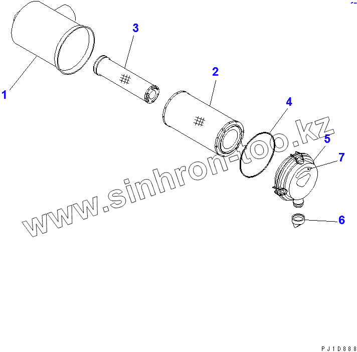 Каталог запасных частей к технике: Komatsu PC200-7-AA. AIR CLEANER (INNER PART)