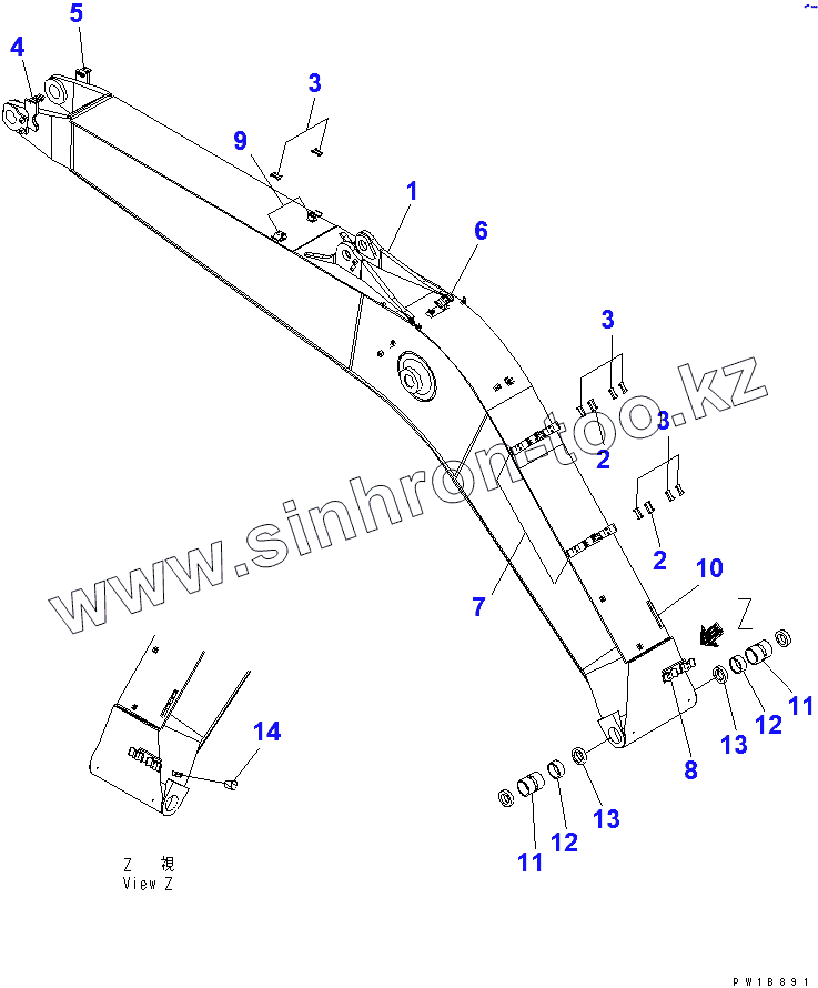 Каталог запасных частей к технике: Komatsu PC200-7-AA. BOOM (HD)