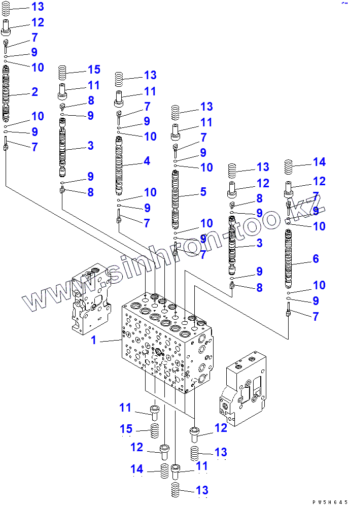 Каталог запасных частей к технике: Komatsu PC200-7-AA. MAIN VALVE (1/16)