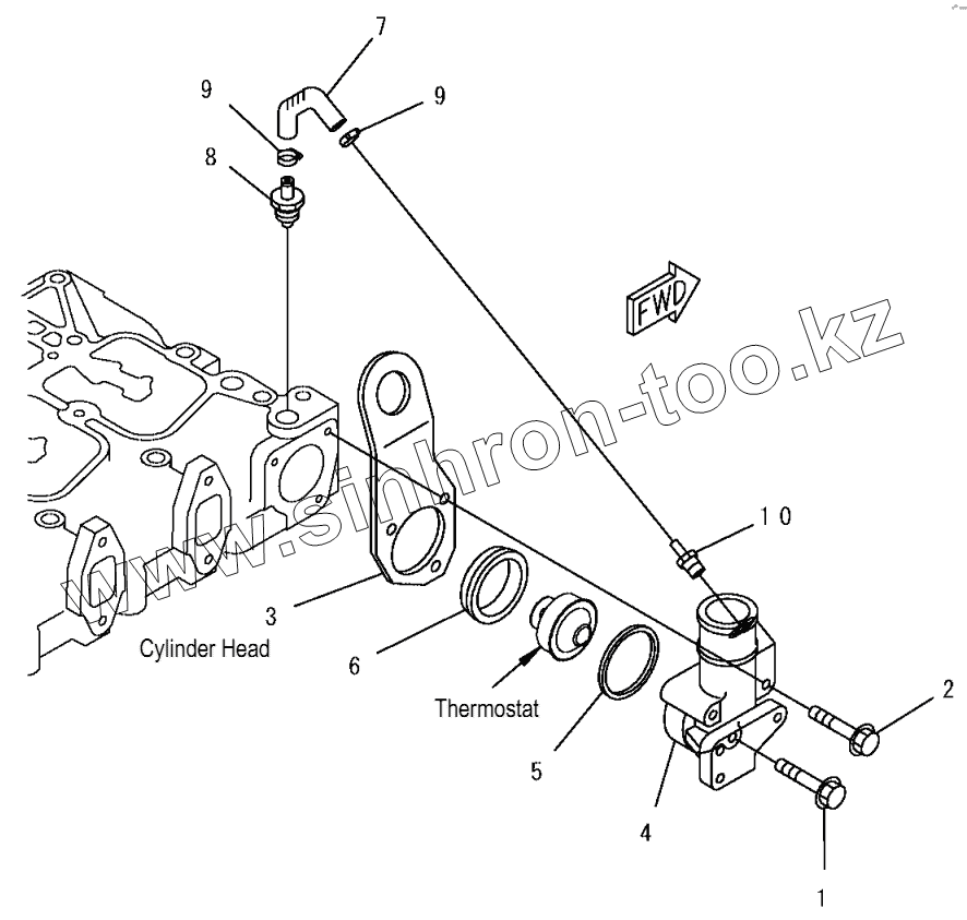 Каталог запасных частей к технике: Komatsu PC200, 210(LC)-7. A173P-01A0 THERMOSTAT HOUSING