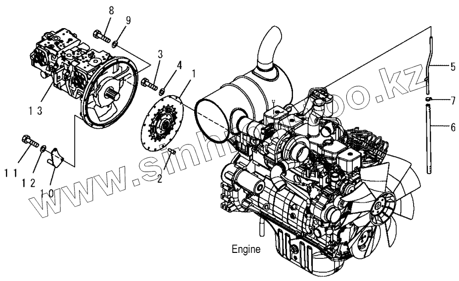 Каталог запасных частей к технике: Komatsu PC200, 210(LC)-7. B0000-01A0 DAMPER, PUMP AND TUBE