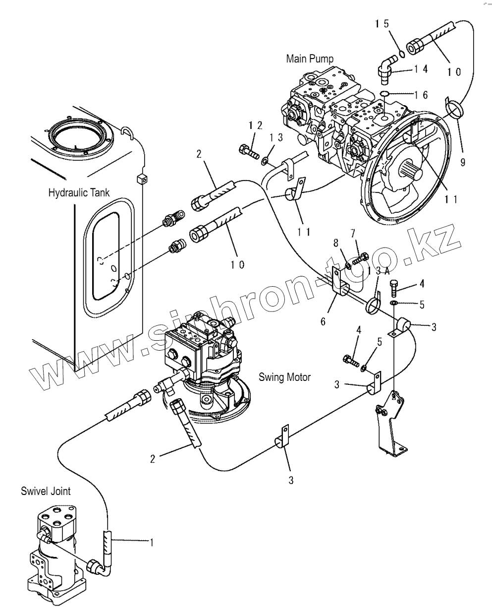 Каталог запасных частей к технике: Komatsu PC200, 210(LC)-7. H0340-01A0 DRAIN LINES