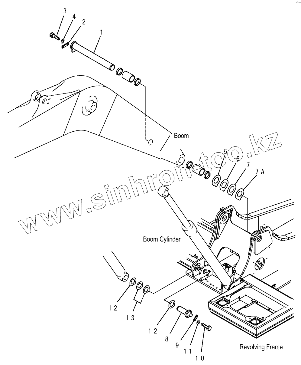 Каталог запасных частей к технике: Komatsu PC200, 210(LC)-7. J1310-01A0 BOOM FOOT PIN
