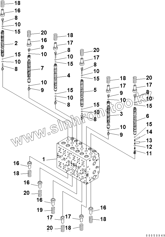 Каталог запасных частей к технике: Komatsu PC400-7EO. MAIN VALVE (1/20)(#60073-)