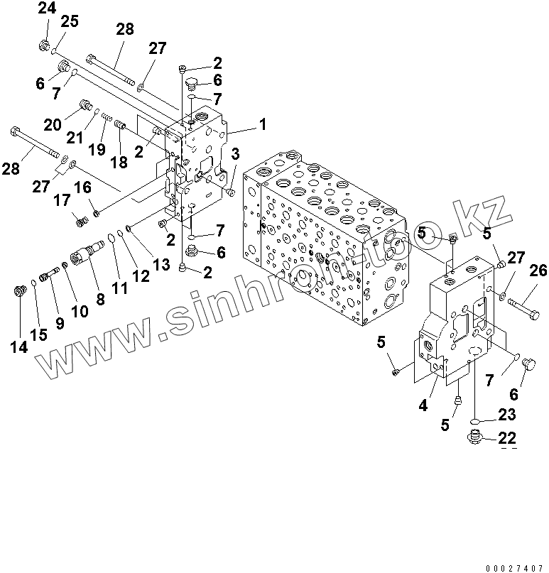 Каталог запасных частей к технике: Komatsu PC400-7EO. MAIN VALVE (7/20)