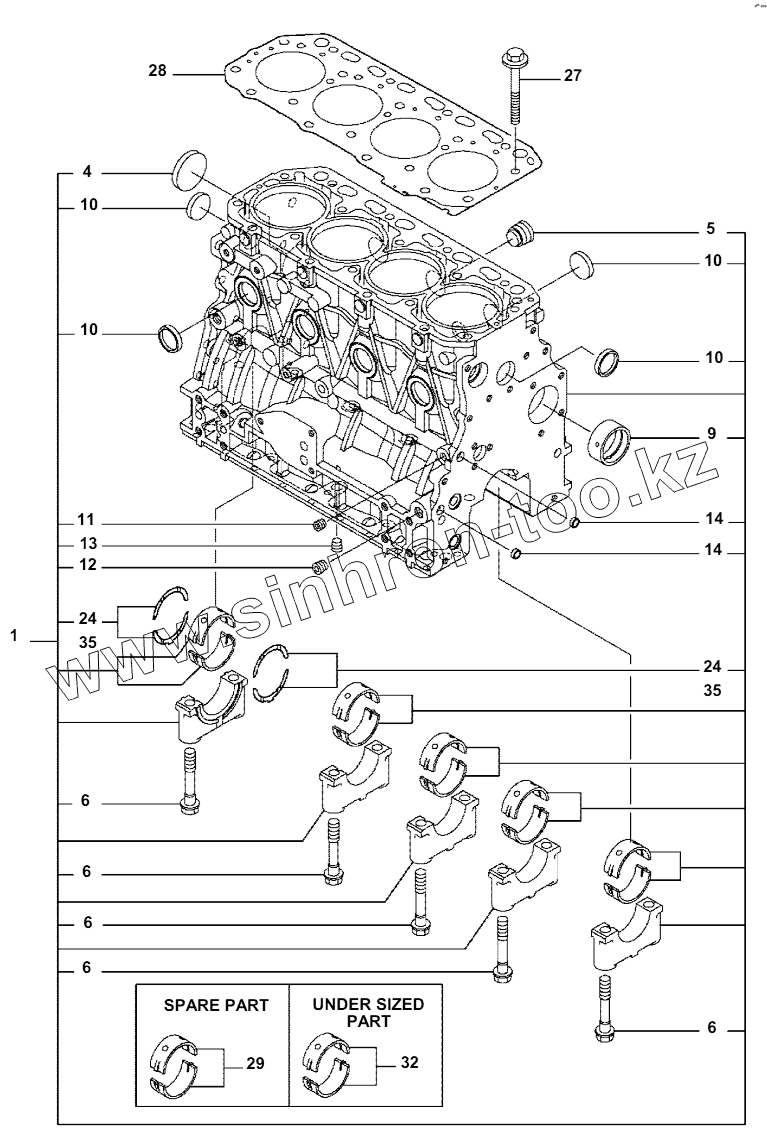 Каталог запасных частей к технике: Komatsu Погрузчик SK820. A0000-001001 CYLINDER BLOCK
