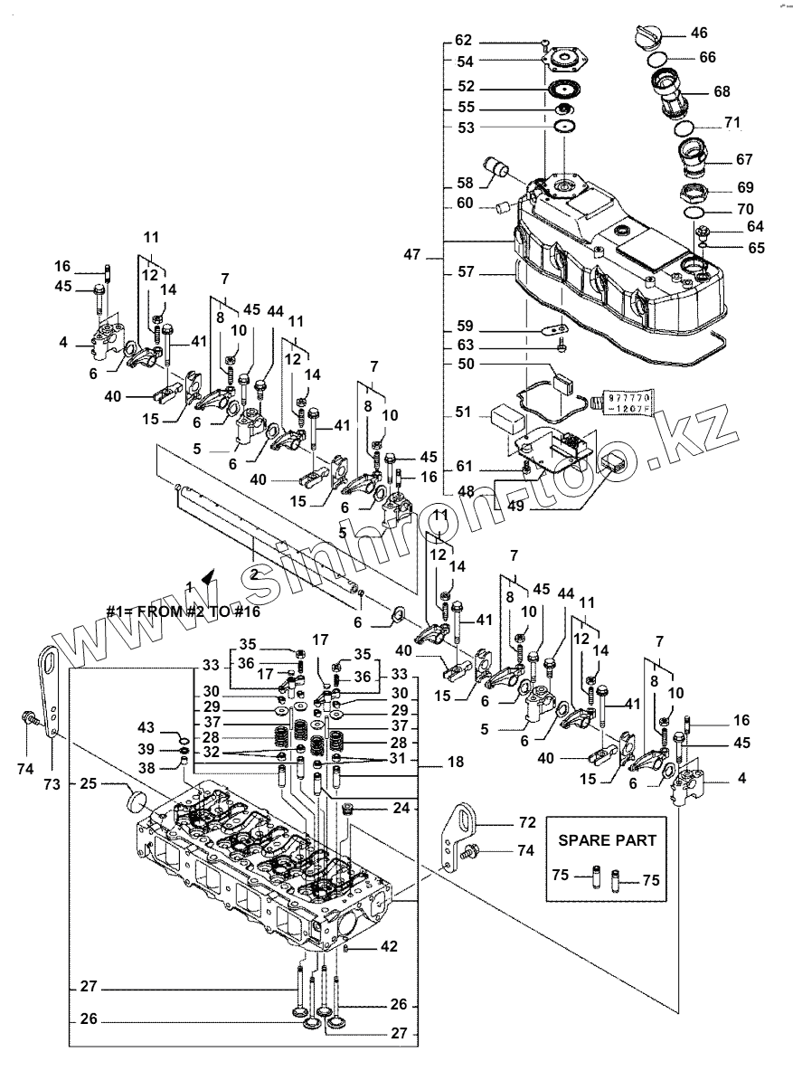 Каталог запасных частей к технике: Komatsu Погрузчик SK820. A0000-001004 CYLINDER HEAD AND BONNET