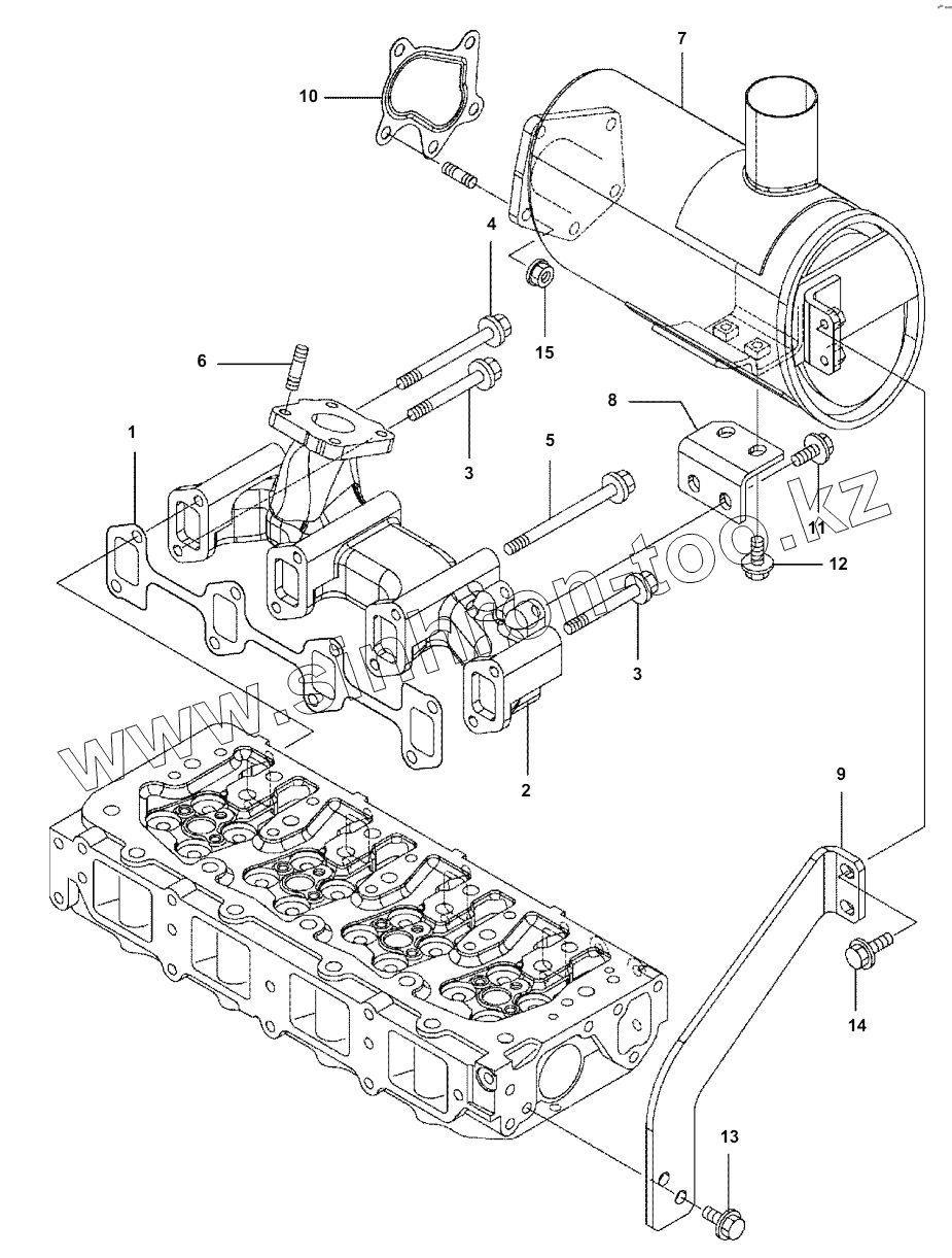 Каталог запасных частей к технике: Komatsu Погрузчик SK820. A0000-001006 EXHAUST MANIFOLD AND SILENCER