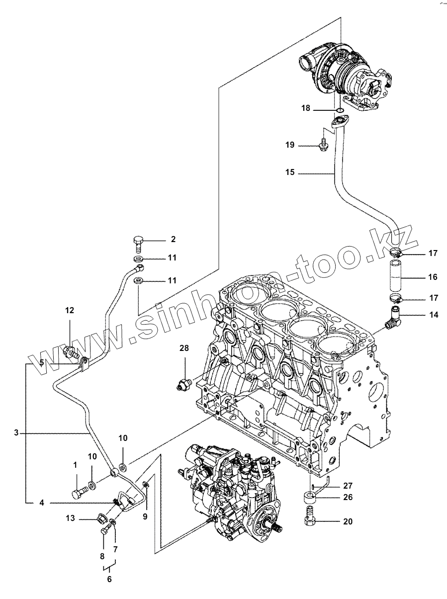 Каталог запасных частей к технике: Komatsu Погрузчик SK820. A0000-001011 LUBRICATING OIL LINE