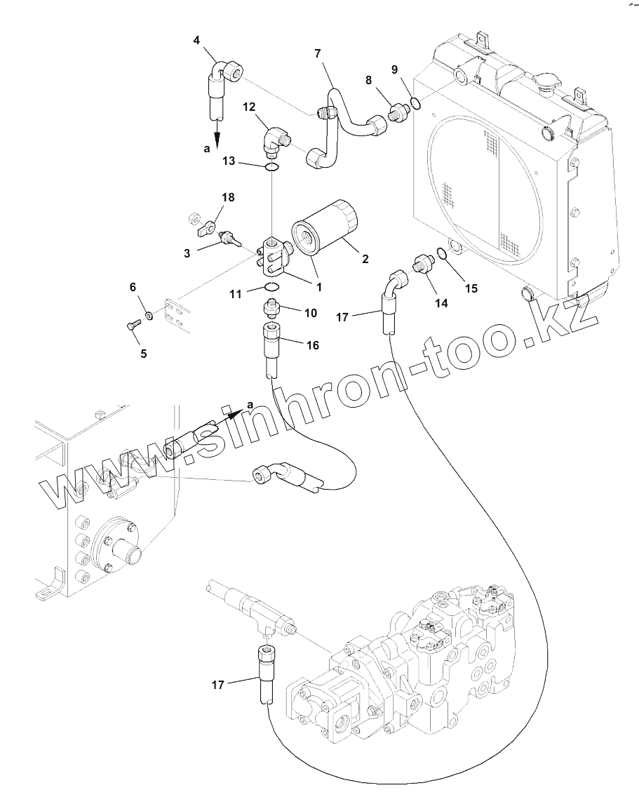 Каталог запасных частей к технике: Komatsu Погрузчик SK820. C0100-001004 COOLING SYSTEM, HYDRAULIC DRAIN LINE