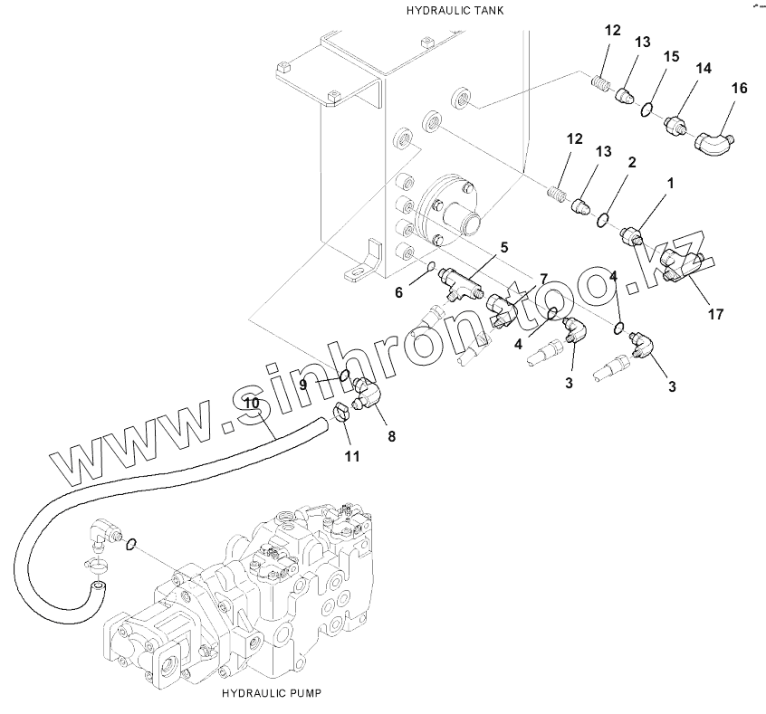 Каталог запасных частей к технике: Komatsu Погрузчик SK820. H0110-001002 HYDRAULIC OIL TANK, DRAIN LINE