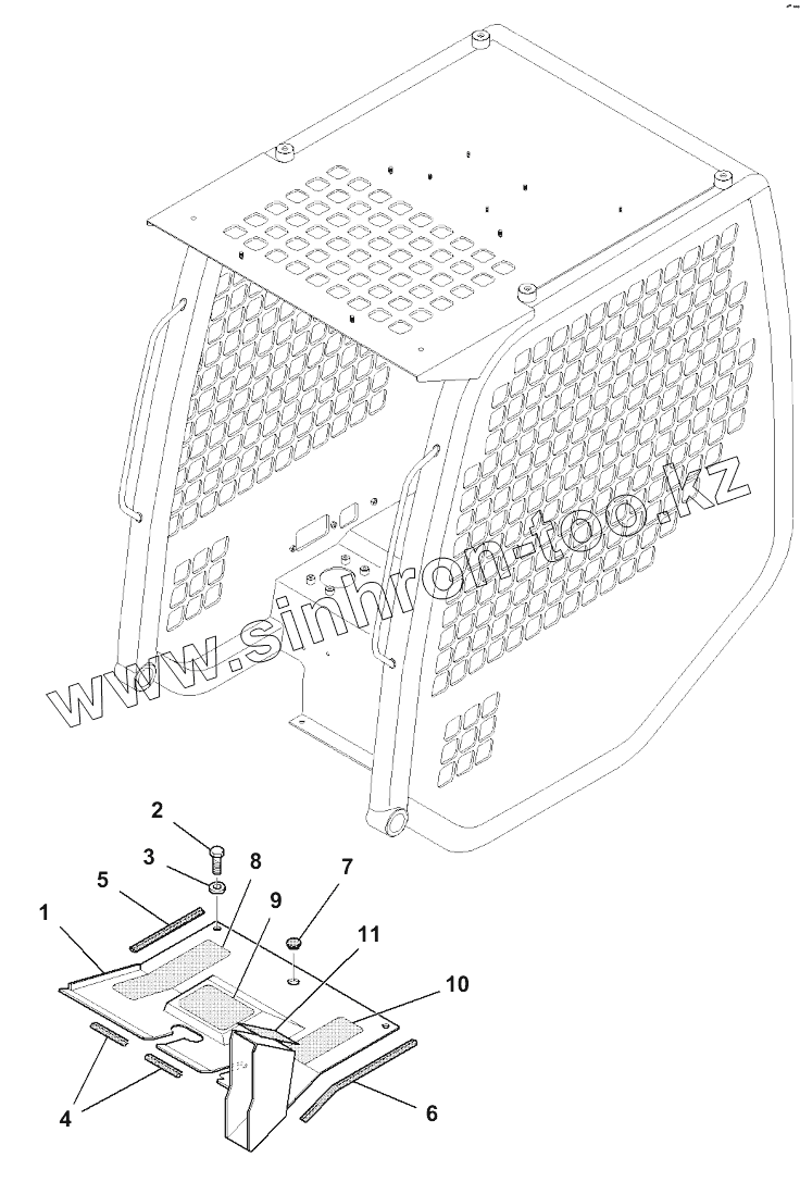 Каталог запасных частей к технике: Komatsu Погрузчик SK820. K1130-002001 FLOOR COVER, HIGH-FLOW