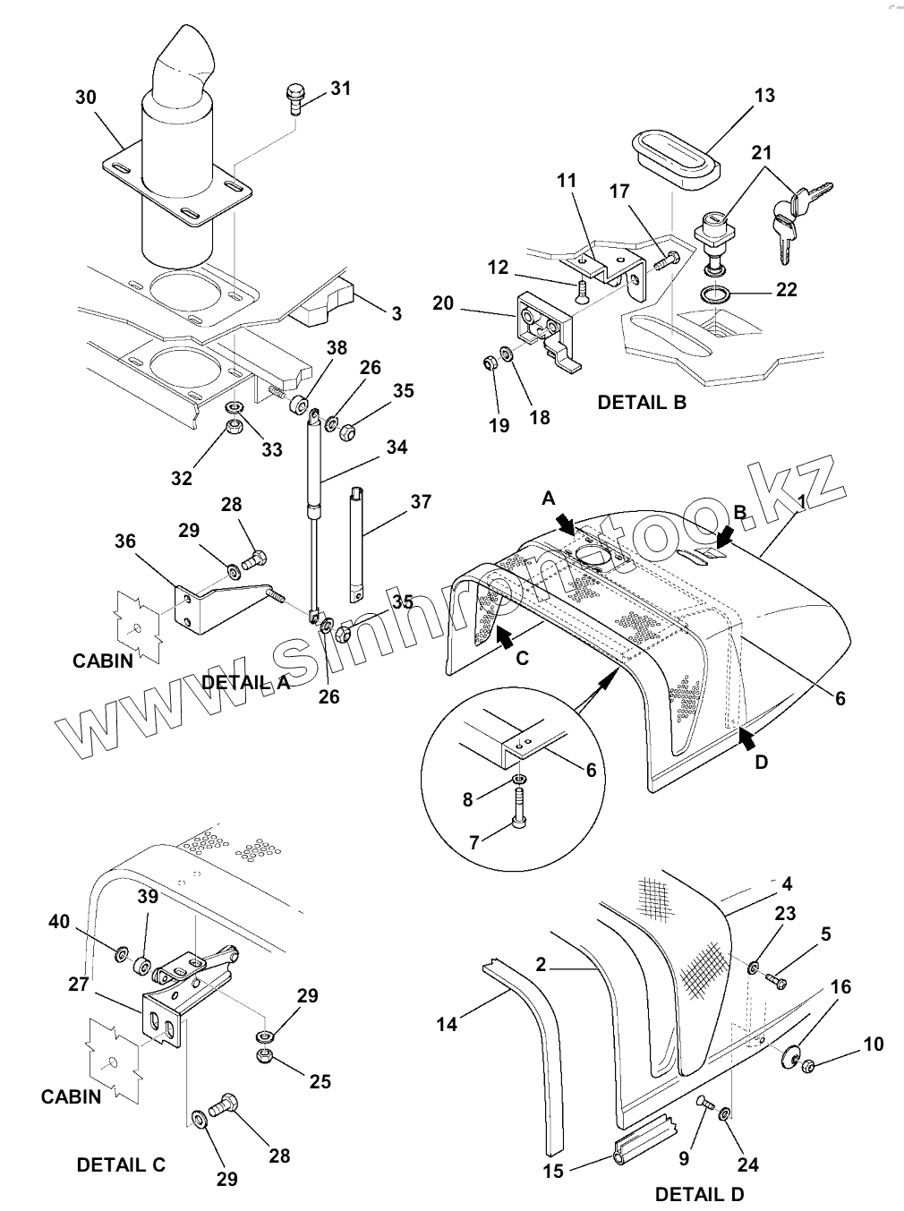 Каталог запасных частей к технике: Komatsu Погрузчик SK820. M1110-001001 ENGINE HOOD