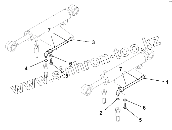 Каталог запасных частей к технике: Komatsu Погрузчик SK820. T4150-001003 ARM, BUCKET CYLINDER, CONNECTING PARTS