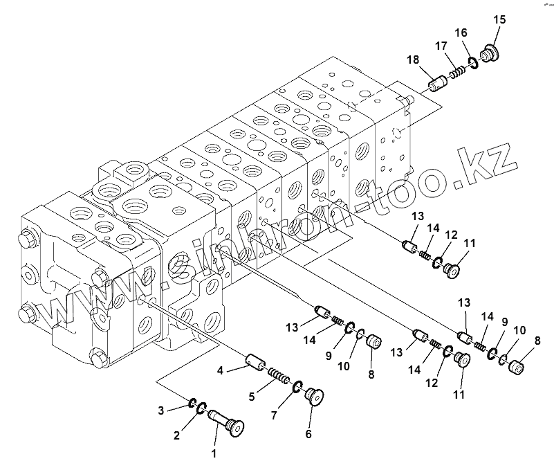 Каталог запасных частей к технике: Komatsu WB93R-5E0. 10-SPOOL CONTROL VALVE MECHANICAL CONTROLS
