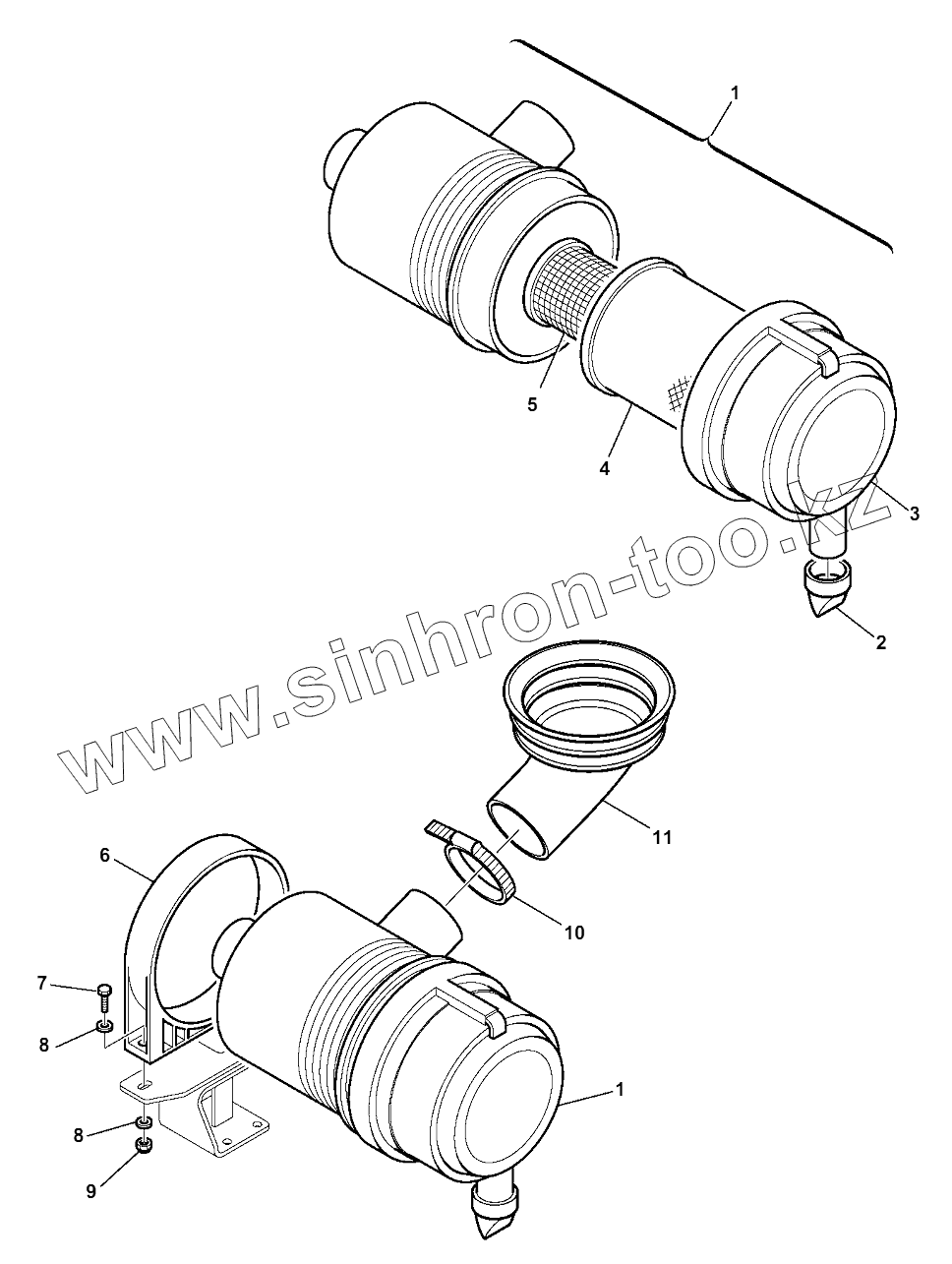 Каталог запасных частей к технике: Komatsu WB93R-5E0. AIR CLEANER