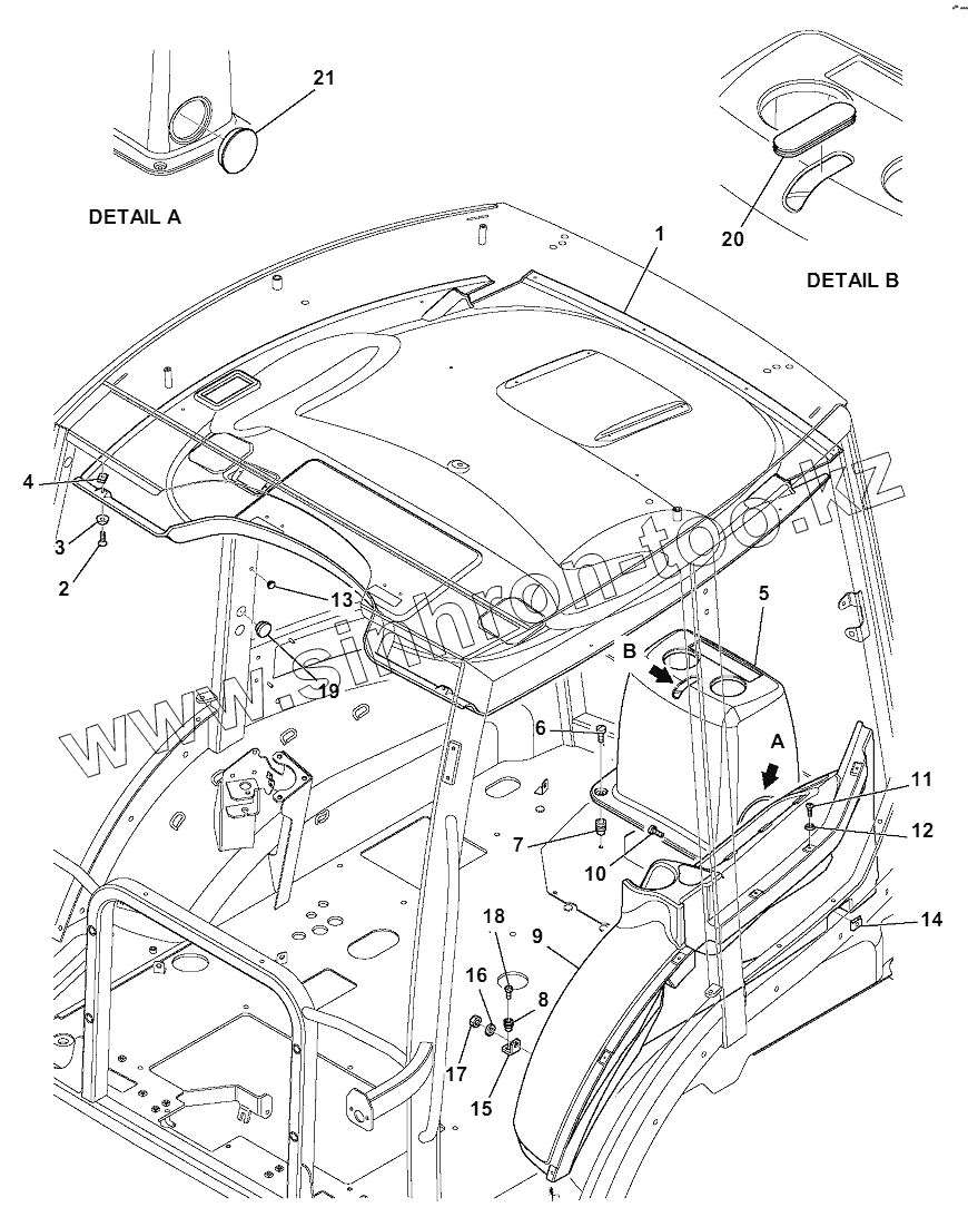 Каталог запасных частей к технике: Komatsu WB93R-5E0. CAB