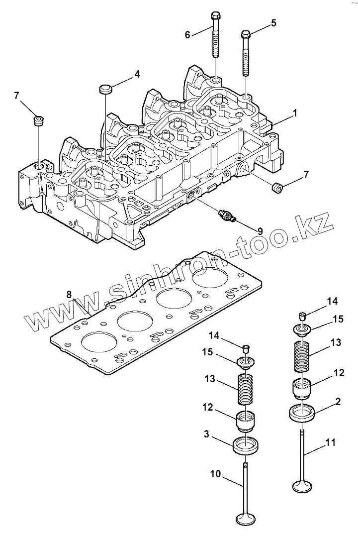 Каталог запасных частей к технике: Komatsu WB93R-5E0. CYLINDER HEAD