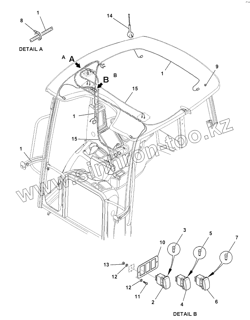Каталог запасных частей к технике: Komatsu WB93R-5E0. ELECTRICAL SYSTEM (CAB)