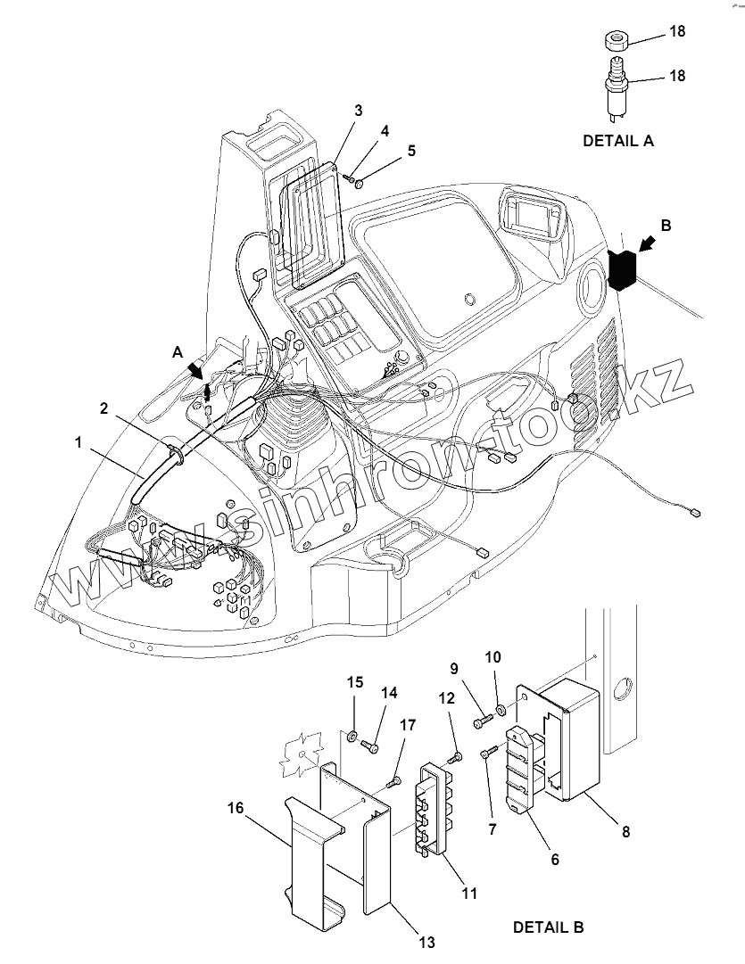 Каталог запасных частей к технике: Komatsu WB93R-5E0. ELECTRICAL SYSTEM (CAB)
