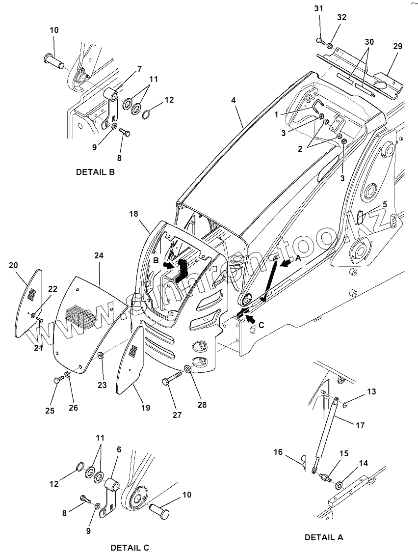 Каталог запасных частей к технике: Komatsu WB93R-5E0. ENGINE HOOD