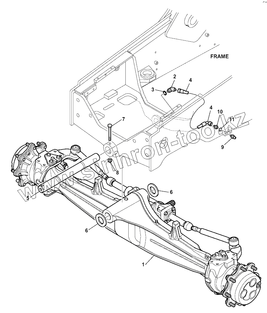 Каталог запасных частей к технике: Komatsu WB93R-5E0. FRONT AXLE FIXING