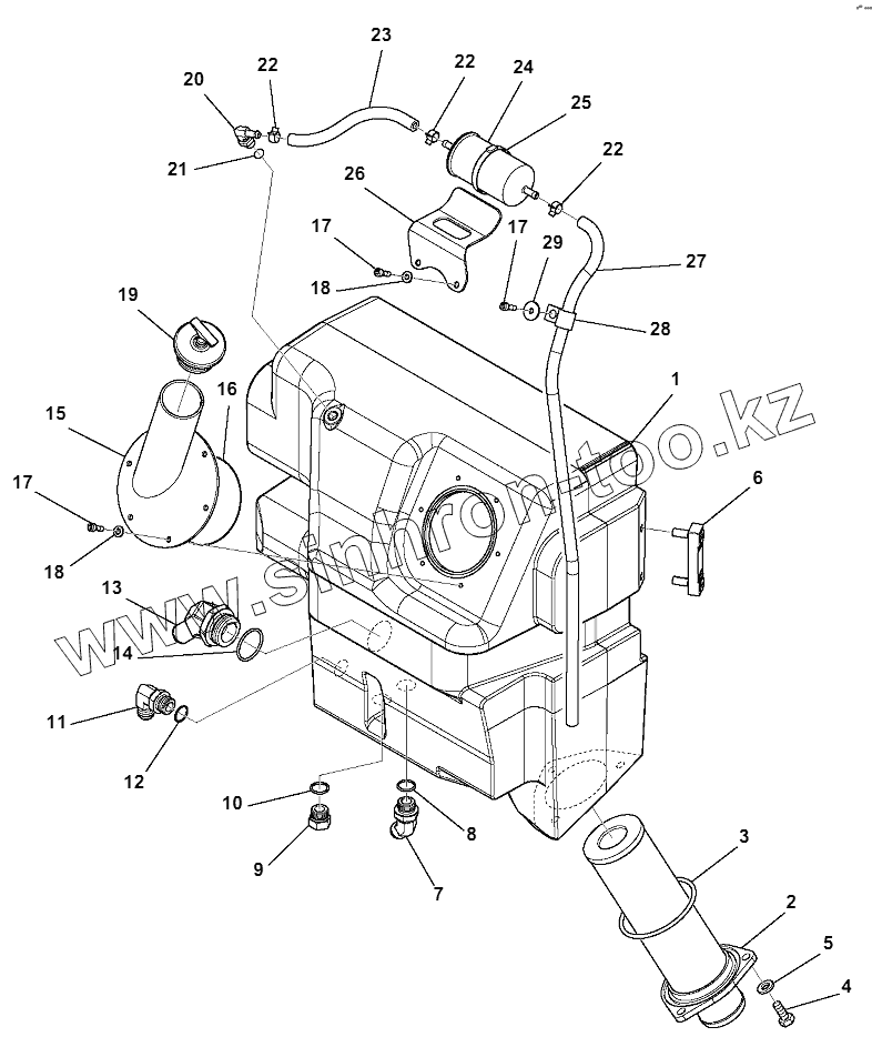 Каталог запасных частей к технике: Komatsu WB93R-5E0. HYDRAULIC TANK