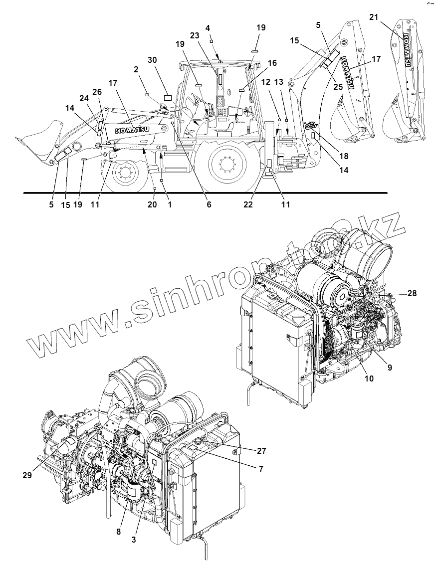 Каталог запасных частей к технике: Komatsu WB93R-5E0. MARK PLATE