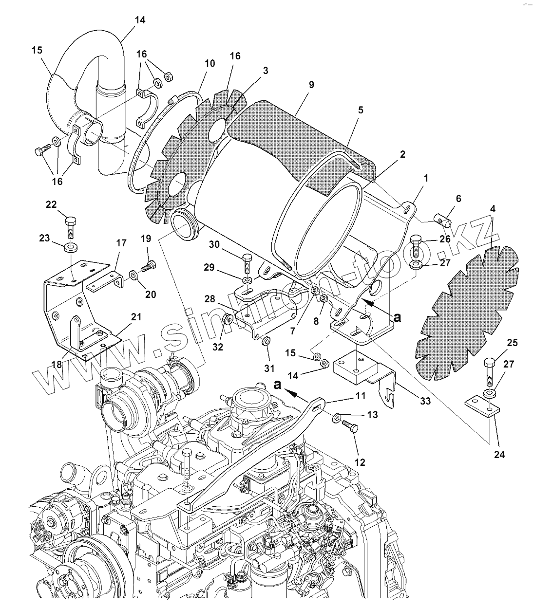 Каталог запасных частей к технике: Komatsu WB93R-5E0. MUFFLER