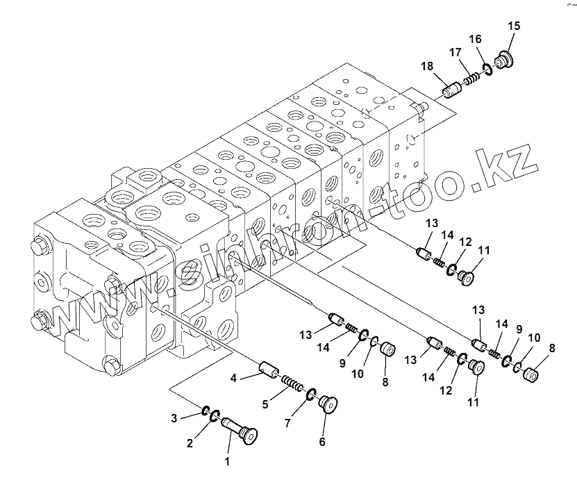 Каталог запасных частей к технике: Komatsu WB93S-5E0. 10-SPOOL CONTROL VALVE (10/16)