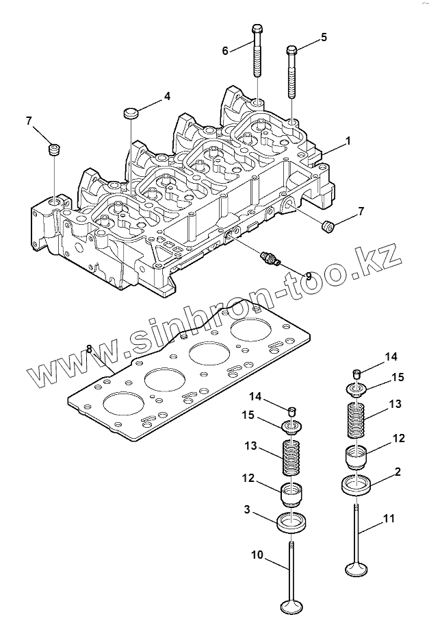 Каталог запасных частей к технике: Komatsu WB93S-5E0. CYLINDER HEAD (1/2)