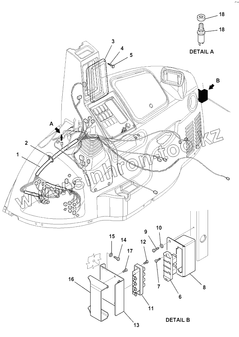 Каталог запасных частей к технике: Komatsu WB93S-5E0. ELECTRICAL SYSTEM (CAB) (3/5)