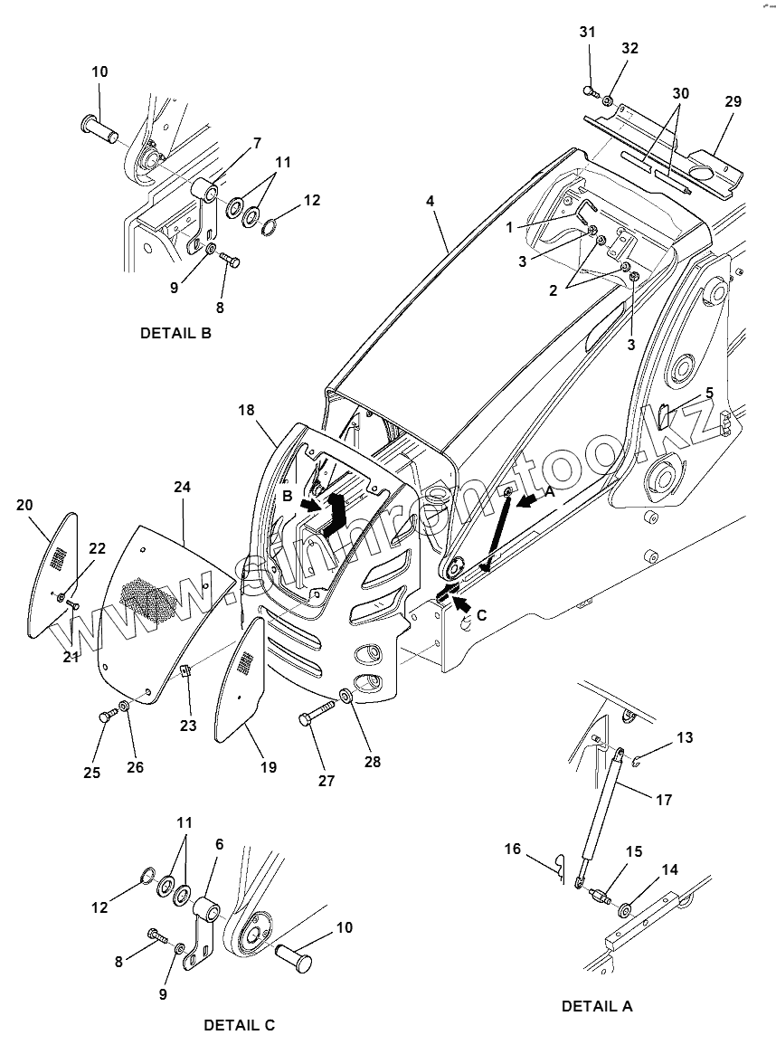 Каталог запасных частей к технике: Komatsu WB93S-5E0. ENGINE HOOD (1/2)