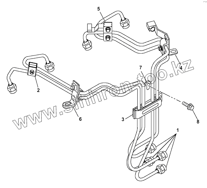 Каталог запасных частей к технике: Komatsu WB93S-5E0. FUEL INJECTION LINE