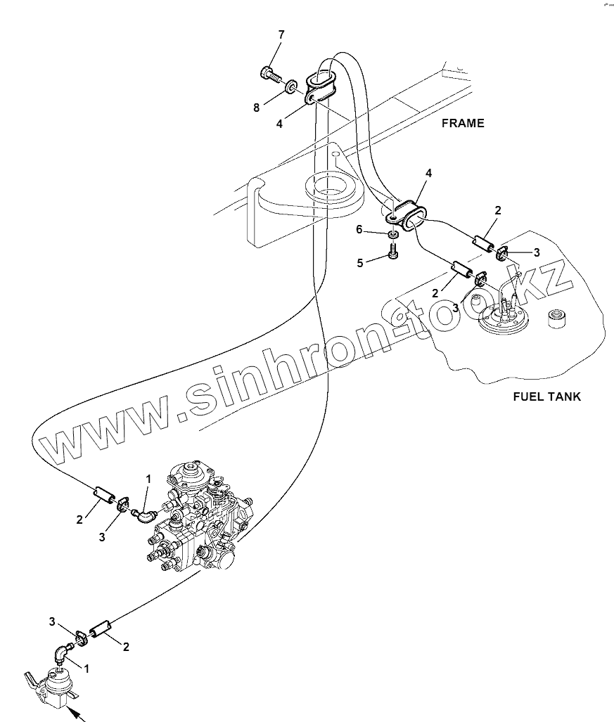 Каталог запасных частей к технике: Komatsu WB93S-5E0. FUEL LINE