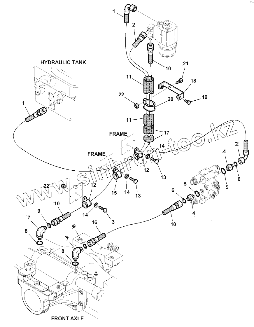 Каталог запасных частей к технике: Komatsu WB93S-5E0. HYDRAULIC PIPING (STEERING LINE) (3/4)