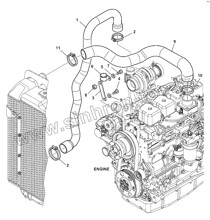 Каталог запасных частей к технике: Komatsu WB93S-5E0. RADIATOR (1/3)